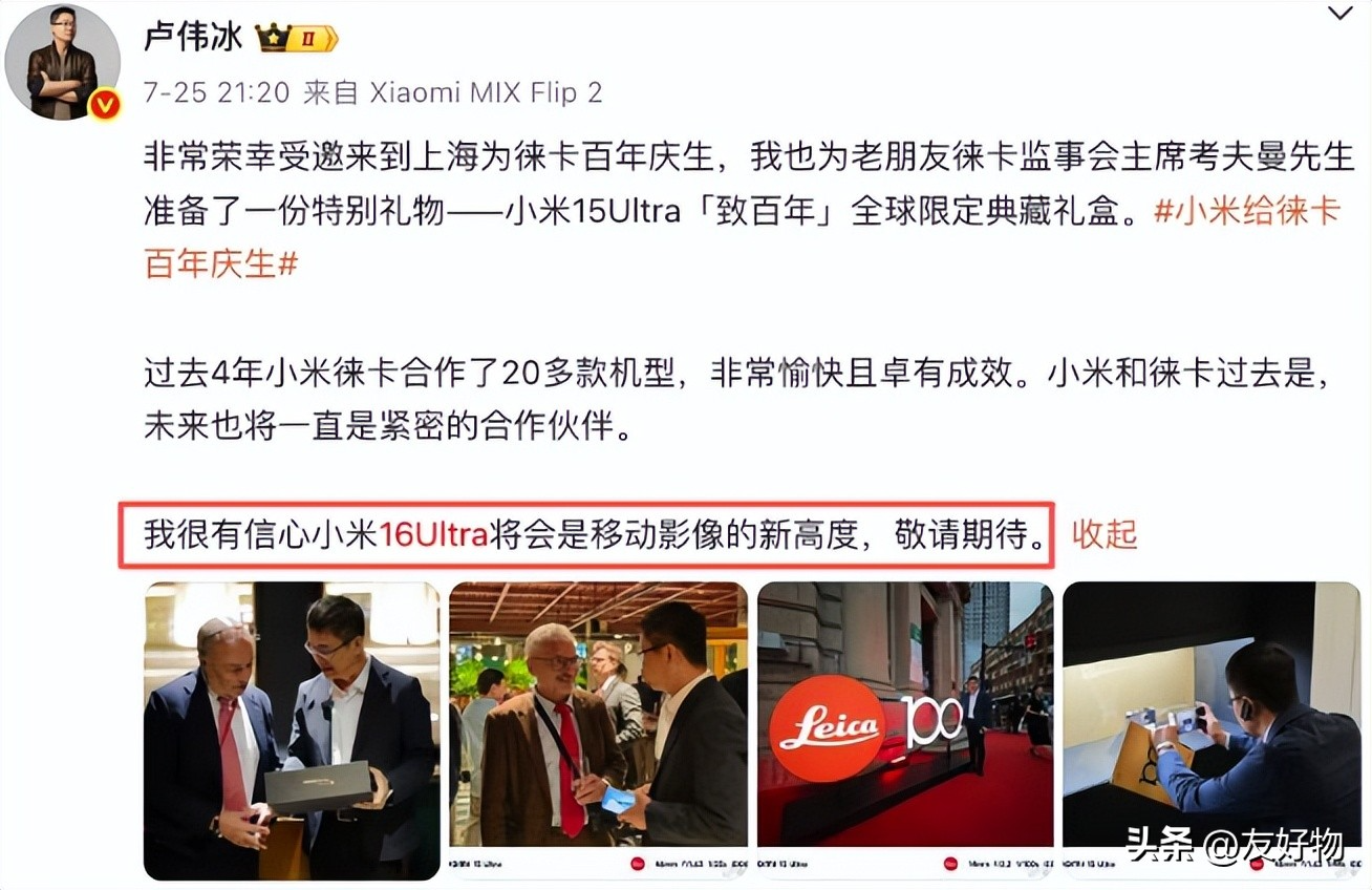 尽管雷布斯在2025年度演讲上了发布了3款小米17机型,但小米17系列真正的影像超大杯Ultra版还是有的。毕竟卢伟冰早在7月份就确认过了,只不过那时还是小米16Ultra,没想到短短两个月不到,就由小米16Ultra进化成小米17Ultra了(小米15Ultra机主:xxxxx)。