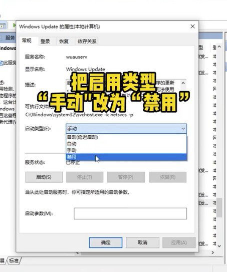 右键此电脑选择“管理”,点击“服务和应用程序”,点击“服务”,找到“Windows update”,之后双击打开,把启动类型“手动”改为“禁用”,点击确定按钮。