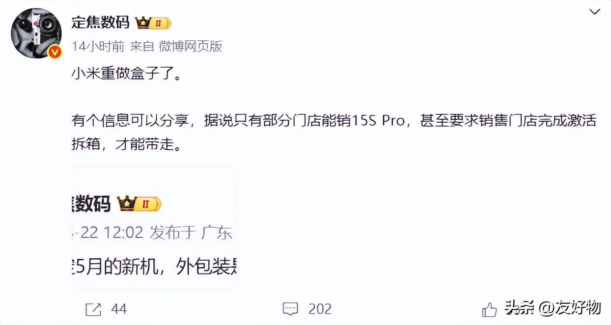 据知名博主@定焦数码 爆料到:“据说只有部分门店能销15SPro,甚至要求销售门店完成激活拆箱,才能带走”。所以黄牛党们就死了这条心吧。